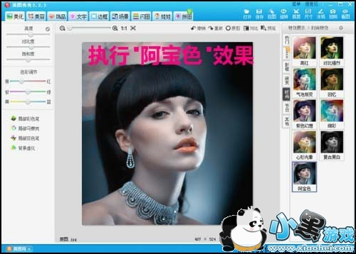 好!这时候前期工作基本做好了,执行“特效展示>时尚特效”标签下的“阿宝色效果”。