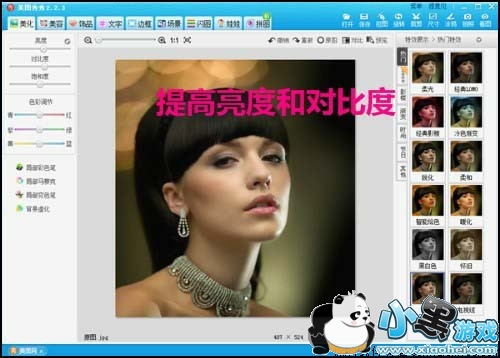 接下来回到“美化”的界面,稍稍提高亮度和对比度,使得整张图片的明度提高,人物更清晰。这一步可以因图而异。
