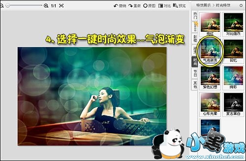 4、回到如图3的界面后,对图片进行一键特效处理,这里选择的是“时尚-气泡渐变”效果。如图6所示。