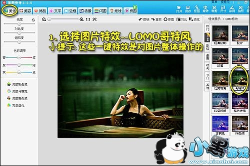 1、先来体会一下软件的一键图片特效,比如下图3中的“LOMO哥特风”,选中特效后,图片整体的感觉都变了。