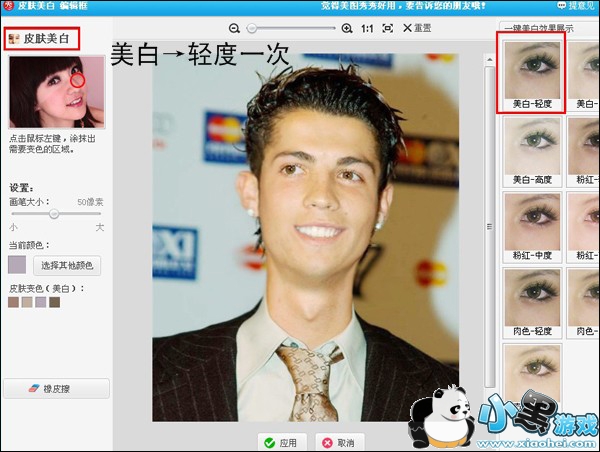 然后把“整形”过的图片进行一次美白,让C罗显得更白嫩。