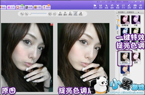 如果对一键特效处理后的照片不是太满意,还可以适当调节一下色彩饱和度和对比度,这对改善照片色调也有不同凡响的效果。