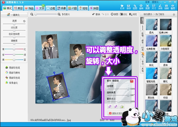通过右键“插入一张图片”导入的素材图片同样可以进行旋转、缩放和调节透明度等操作哦!