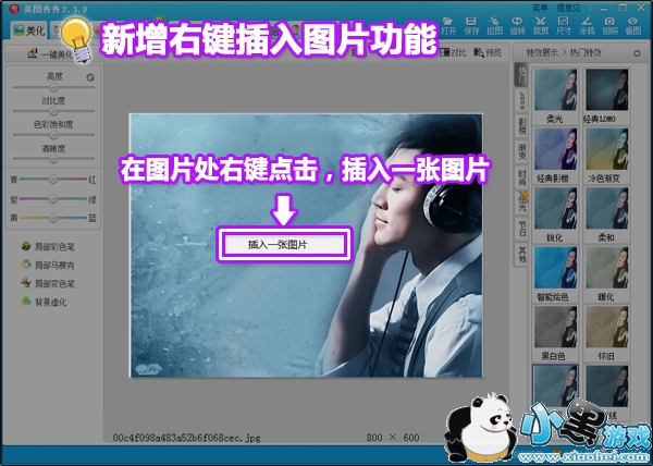 过去想要将素材图片导入使用,必需通过“饰品”—“导入饰品”来完成,过程比较繁琐。而新版中新增的右键插入图片功能让图片导入更方便快捷,用户只需在操作界面中右击选择“插入一张图片”便可导入电脑中的素材图片。
