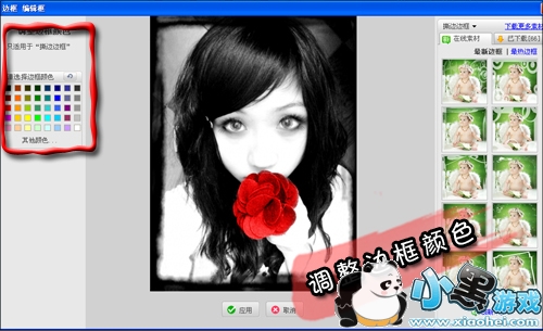 7、然后进入 “边框”标签下选择撕边边框。进入撕边边框界面下,选择一个边框。还可以通过旁边的颜色编辑器来选择合适的颜色,来调节边框的颜色。