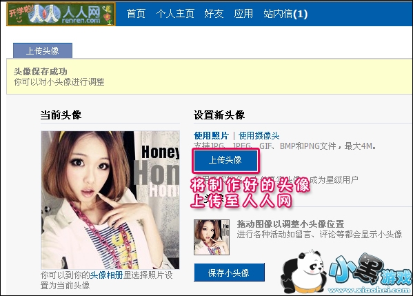 5、这就大功告成了,现在就将新做好的头像保存起来,然后上传到人人网吧。如图6所示。