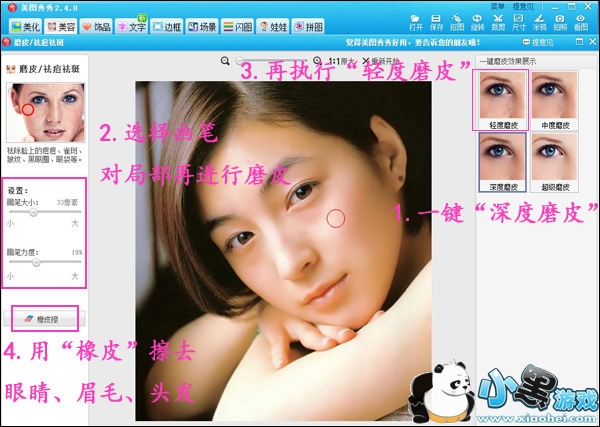 比起拍照前的花大把时间上妆,这个后期彩妆效果逼真不说,操作起来简单方便,只要鼠标点点一分钟内搞定!所以喜欢自拍的MM,碰巧素颜时拍的照片也可以后期再来美容哦!赶快下载“美图秀秀”亲身体验一下吧。