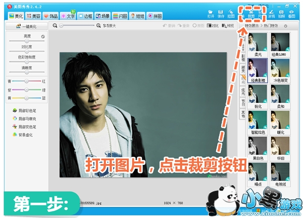 1.先用美图秀秀随意打开一张照片,点击“剪裁”功能按钮。