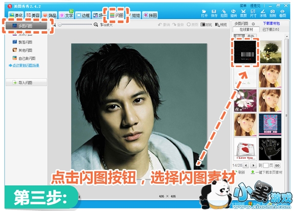 3.接下来很简单,只要进入“闪图”菜单,任意选择“多图闪图”中的一个喜欢的素材。