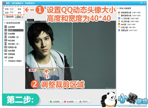 2.按照QQ动态头像的规格设定尺寸大小,然后完成剪裁。