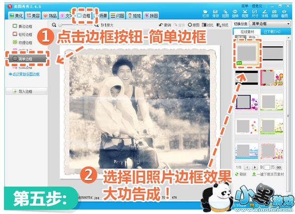 5、最后再给照片加一个那个时代特有的照片边框就搞定啦。