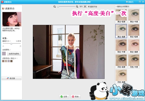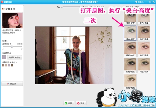 先打开要处理的背光照片,在美图秀秀的“美容”菜单中进行“皮肤美白”操作,让整体色调都亮起来。