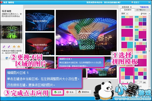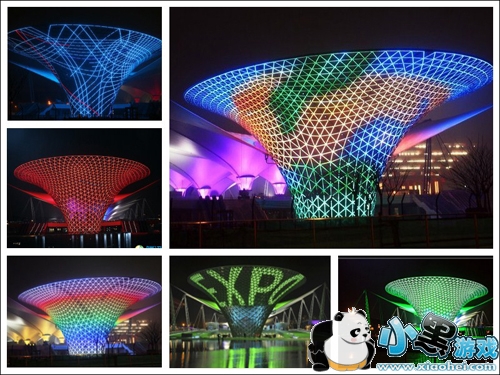 就拿最热门的世博游来说,同一个建筑在白天或不同灯光下呈现出多样的变化,这时候用利用简单的照片合成法,将多张照片拼起来对比一下,更能体现建筑的动态美。