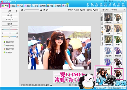 接下来用一个“经典LOMO”和“淡雅”特效,就能让照片色调变得正常了。不过大家还是要看照片的曝光程度多做调整哦。