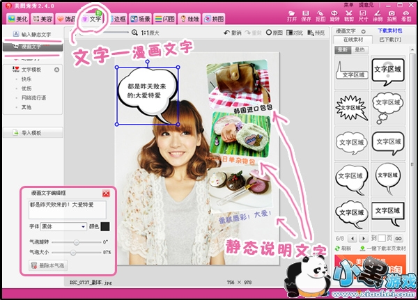 3、添加好图片后,来加上一些可爱的漫画文字。