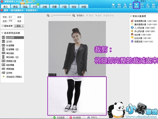 第一步:打开要处理的美女照片,用“裁剪”工具将人物腿部完整的剪裁下来。