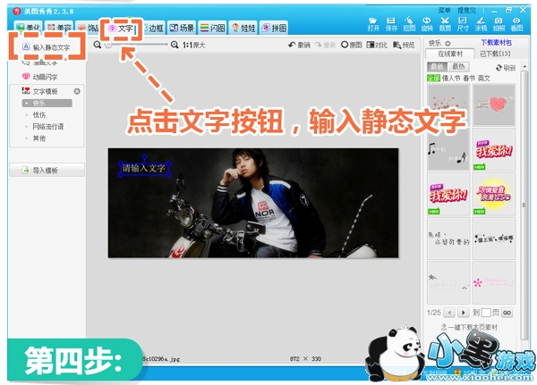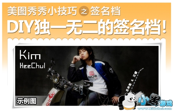 美图秀秀轻松DIY独一无二的签名档—转载自《学生电脑》10月稿对喜欢泡吧灌水的朋友来说,想在论坛贴吧中脱颖而出,拥有一个吸引人的签名档非常关键。如果想要一个自己的专属签名图,用美图秀秀也能做到,自己动手简单DIY就行啦!下面就借用SJ中的人气帅哥金希澈的图片,来教大家打造明星签名档。 图11、在软件中打开一张金希澈的图片,点击右上角“剪裁”按钮。如图2所示。 图22、进入“剪裁”界面后,按住鼠标左键,选择剪裁区域。如图3所示,确定好后剪裁位置后,即可双击完成剪裁。 图33、在“美化”菜单下,选择“柔光”和“电视线”的特效,如图4所示,将两种特效组合使用,效果很不错哦。 图44、想做签名档,除了图片,文字不可缺少。接着进入“文字”菜单下,如图5所示,选择“输入静态文字”在图片上添加想说的话。 图55、最后为了让签名档在网页中更好看,如图6所示,给做好的图片添加一个简单边框,这就大功告成啦! 图6最后来看看签名档的效果吧: 图7用“美图秀秀”软件的制作签名档,非常简单且容易操作,无论是明星签名档,还是自己的独特个性心情签名档,都可以动手DIY哦!感兴趣的朋友赶快来DIY独一无二的个性签名档吧!