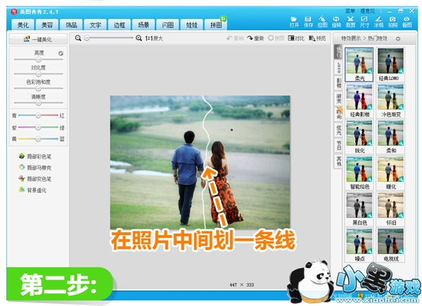 第二步:在图片的适合位置随意划一道白线,注意不要太规则,制造出撕裂的裂痕效果。