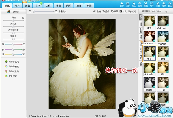 3、“泛黄暗角”特效执行之后,再执行“锐化”一次,加强细节呈现。