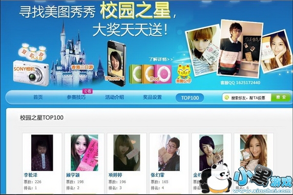 由美图秀秀和人人网共同打造的“寻找美图秀秀校园之星”活动,在各位同学踊跃的参与和支持下,目前已正式进入更加激动人心的决赛阶段。据悉,决赛阶段时间为2010年11月22日12:00至11月29日12:00,在此阶段中所有进入前100名的参赛者将开始一轮“零起点”投票。到底“香港三日游”终极大奖最终花落谁家?“真相”正在一步步的解开!活动官网:http://huodong.renren.com/meitu