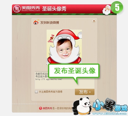 圣诞头像做完之后,不仅能保存,还可以马上点击“发到微博”,或者直接作为微博头像,让好友第一时间看到你自己做的圣诞头像哦!