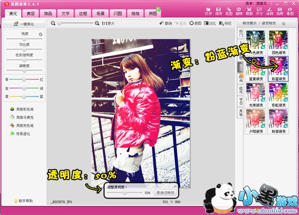 第四步:加上“渐变”分类中“粉蓝渐变”,透明度为50%。
