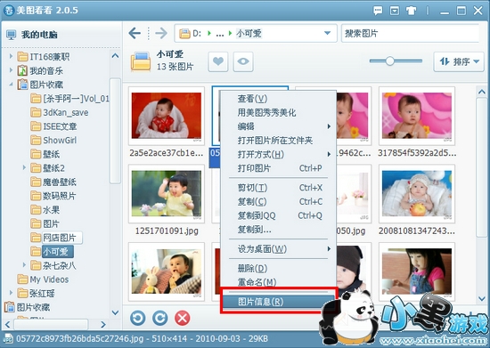 1、在图片管理窗口,鼠标右键单击图片的缩略图,弹出快捷菜单,选择“图片信息”,可以叫起“图片信息”窗口(如图2)。
