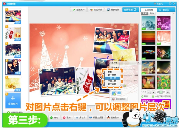3、软件会按照导入顺序,自动设定了图片的层次。当然如果在调节时有需要,对图片点击右键,可以调整图片层次。