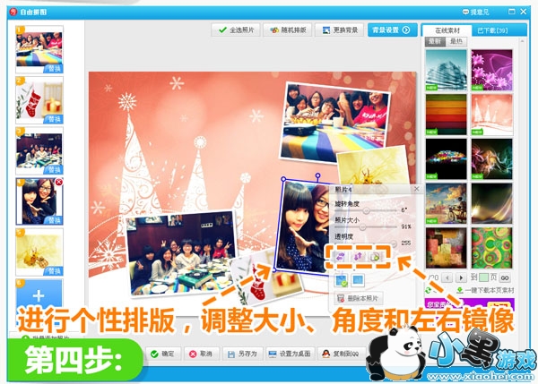 4、按照个人喜好对所有照片进行个性排版,可以对每一个图进行大小、角度、位置或者镜像的调整。排版满意后,点击确定。