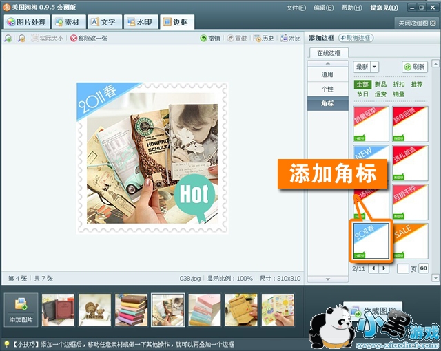 STEP2:在软件“边框”功能标签下,选择个性边框分类,找到并单击邮票风格的边框,宝贝图片即被装扮一新啦!效果如图3所示。这种怀旧又不失可爱的风格可是当下的大热哦!卖家们应该要试试的。
