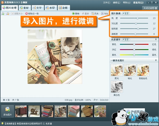 STEP1:首先导入图片,对图片进行微调。如图2所示,亮度、对比度等滑块选项,轻松拖动即可即时预览效果。