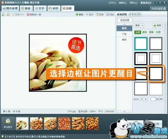 第二步:打开“边框”窗口,选择并单击一种边框素材,为网店商品图片加上边框,这里我们可以选择“通用”分类下的黑色的边框,让图片更加醒目(如图5所示)。