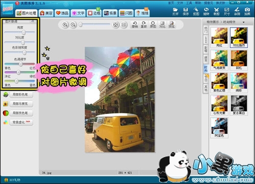 2、如果觉得提亮后的图片,局部色彩不够鲜亮,可以用“局部变色笔”,选择对应的色彩在图片某些区域中涂抹上色。(如下图所示)