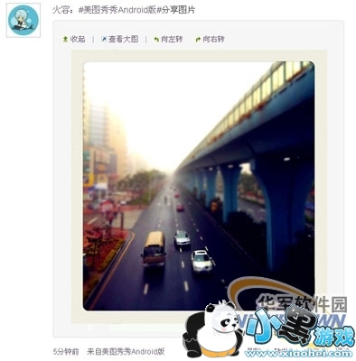 图片处理完成后点击右上角的绿色勾,可以对图片进行保存和分享。图片要分享到新浪围脖,可以在“开始界面”的设置中进行登录也可以在分享前进行登录(只需要登录一次)。