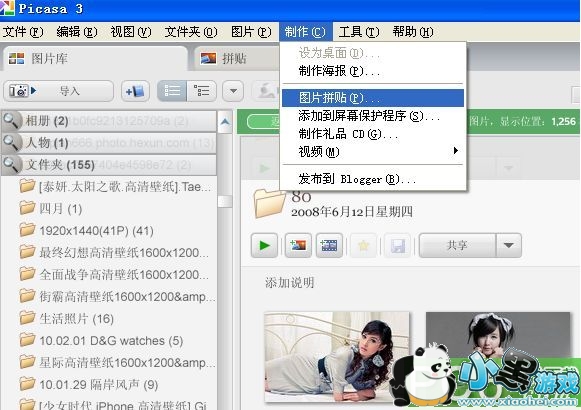 1.运行picasa ,在图片库中随便找些图片(自己也可以上传些漂亮的图片)。如图所示: