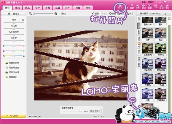1、在“美图秀秀”软件中打开待处理的照片,直接进入“美化”菜单下,选择“LOMO”分类下的“宝丽莱”特效。
