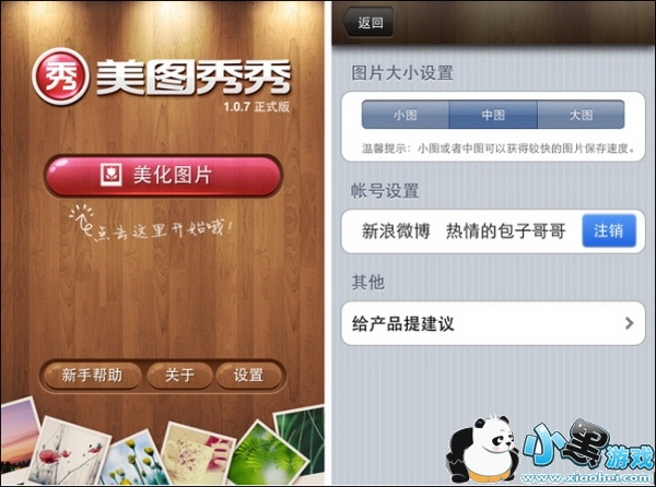 小编提醒:由于美图秀秀iPhone版同样具备微博分享功能,为了后期操作的方便,我们可以从主界面进入设置窗口,预先设置自己的微博帐号。
