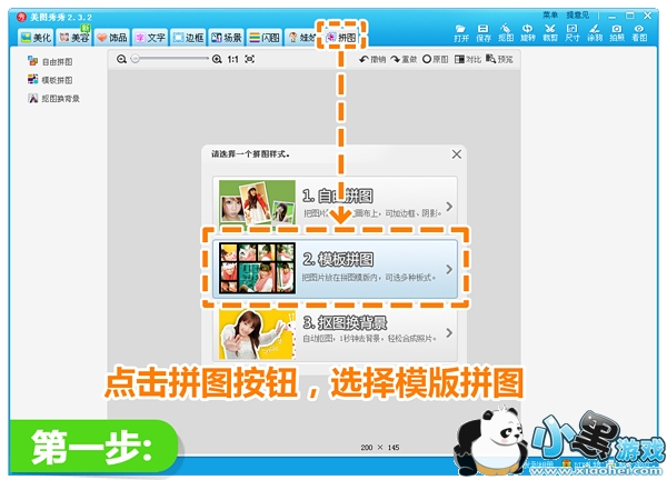 第一步:用美图秀秀打开图片,然后选择“拼图”菜单进入。