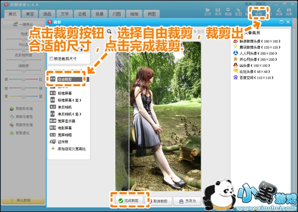 1.点击裁剪按钮,选择自由裁剪,裁剪出合适的尺寸,点击完成裁剪。