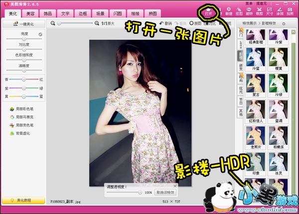 第一步:启动“美图秀秀”,打开一张待处理的夜景照片,背景好黑啊,太浪费YUMMY的美美POSE了吧?~~