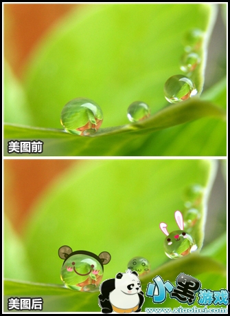 为各种小物注入生命活力,美丽的外形与超Q的表情的结合,让它们的心情也跃然而出!喜爱童话的你,你是不是也被萌到了呢?现在就打开“美图秀秀”,只要简单几步,把晶莹剔透的露珠变得可爱有趣吧!