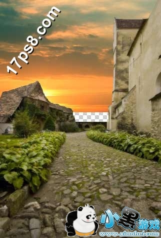 用钢笔将天空部分抠出去除,导入夕阳图片,置于底层。
