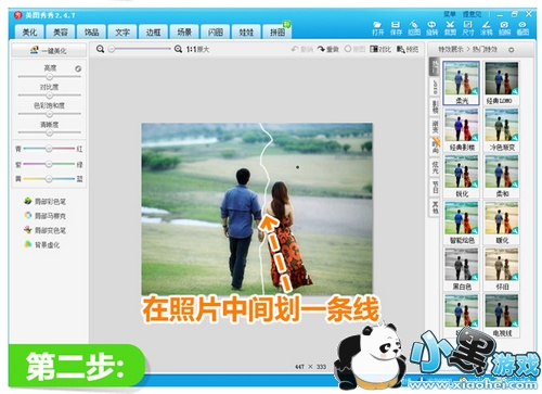 第二步:在图片的适合位置随意划一道白线,注意不要太规则,制造出撕裂的裂痕效果。