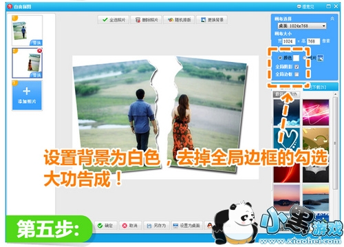 最后,选择白色的画布做背景,只需勾选应用阴影,让照片看上去更有层次感。