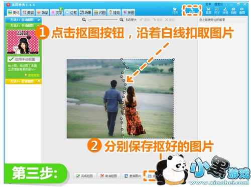 第三步:接着使用“抠图”功能,将左边部分抠下保存;同样方法抠出右边部分保存。