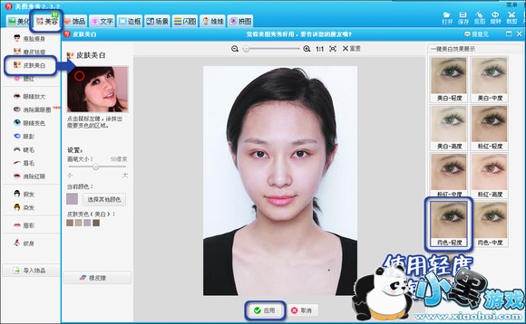 为改善晦暗的肤色,我们可以使用“皮肤美白”中的一键美白功能。注意美白的程度不要太高,否则会白的不自然。
