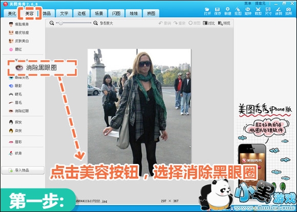 小编点评:综合使用美图秀秀中“去黑眼”和“取色笔”功能,我们也可以实现PS的“仿制图章”功能,去除图片里多余的人物和景色,同时高度还原背景,让整个照片景色更加自然。