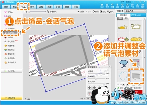 3.点击“饰品—会话气泡”,选择一个你喜欢的会话气泡素材添加进去,调整角度和大小。