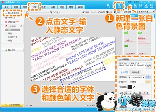 2.新建一张合适大小的白色背景图,点击“文字—输入静态文字”,添加一些装饰性文字。