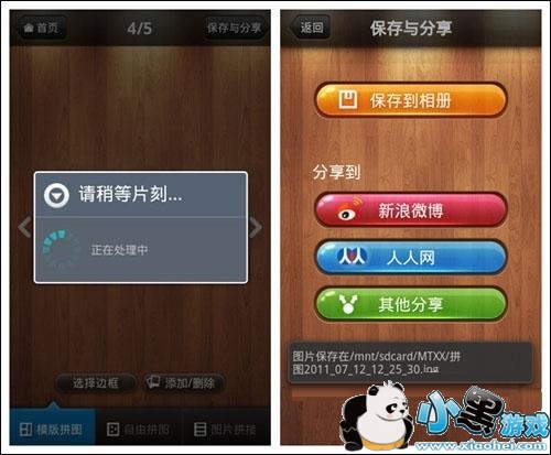 总结:今后,使用1.6系统的用户也可以方便的使用“美图秀秀安卓版”进行图片拼图处理和直接微博共享了。此1.2.1版还对拼图功能进行了全面优化,在照片选取方面通过先选取图片所在文件夹的方式提高了图片选取的精度也优化了图片加载的效率;拼图的保存过程稳定性加强,基本杜绝软件在保存过程中的崩溃。